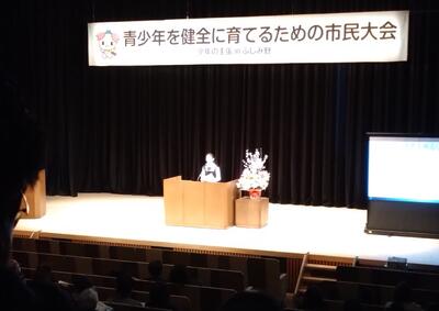 運動委員会は、これからの季節にぴったりの「大縄跳び」をテーマに発表しました。 写真にある通り、ステージの上で実際に跳んで見せながら、タイミングの取り方や入り方のコツを分かりやすく解説しました。