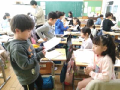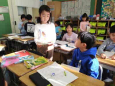 ペアになって好きなところを伝え合う場面では、笑顔で楽しそうに話す姿が見られ、物語の世界を味わいながら、伝える楽しさを感じている様子でした。