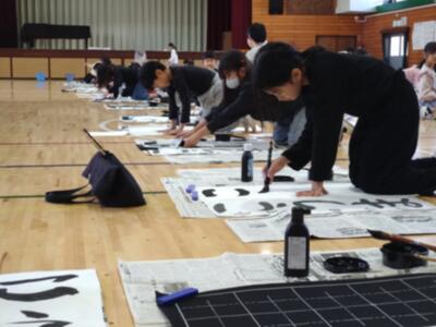 昨日は3年生が、体育館で書きぞめの学習に取り組みました。