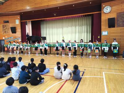 「なかよしタイム」と「のびのびタイム」に体育館で、ダンスクラブの発表が行われました。会場にはたくさんの児童が集まり、音楽が流れると自然と手拍子が起こるなど、大変盛り上がった時間となりました。