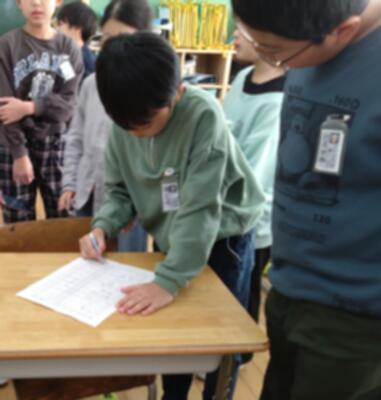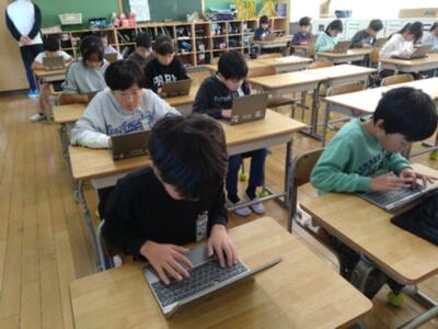 今日は、4年生で「タイピングナンバーワン」を決める大会がありました。制限時間は5分。どれだけ速く、正確に文字を打てるかを競いました。