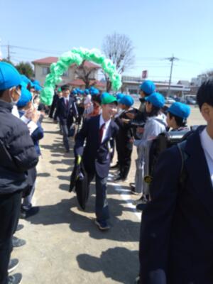 式後、校庭では「巣立ちの会」が行われました。 花のアーチをくぐり、晴れやかな表情で旅立つ卒業生たち。 先生や在校生に見送られ、新しい未来へと力強く一歩を踏み出しました。