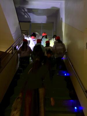 夜の学校に入るだけでもドキドキなのに、色々な仕掛けが待ち構える中で肝試し。